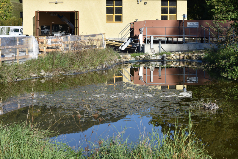 In diesem Teich lebt Gilbert, die Schildkröte.